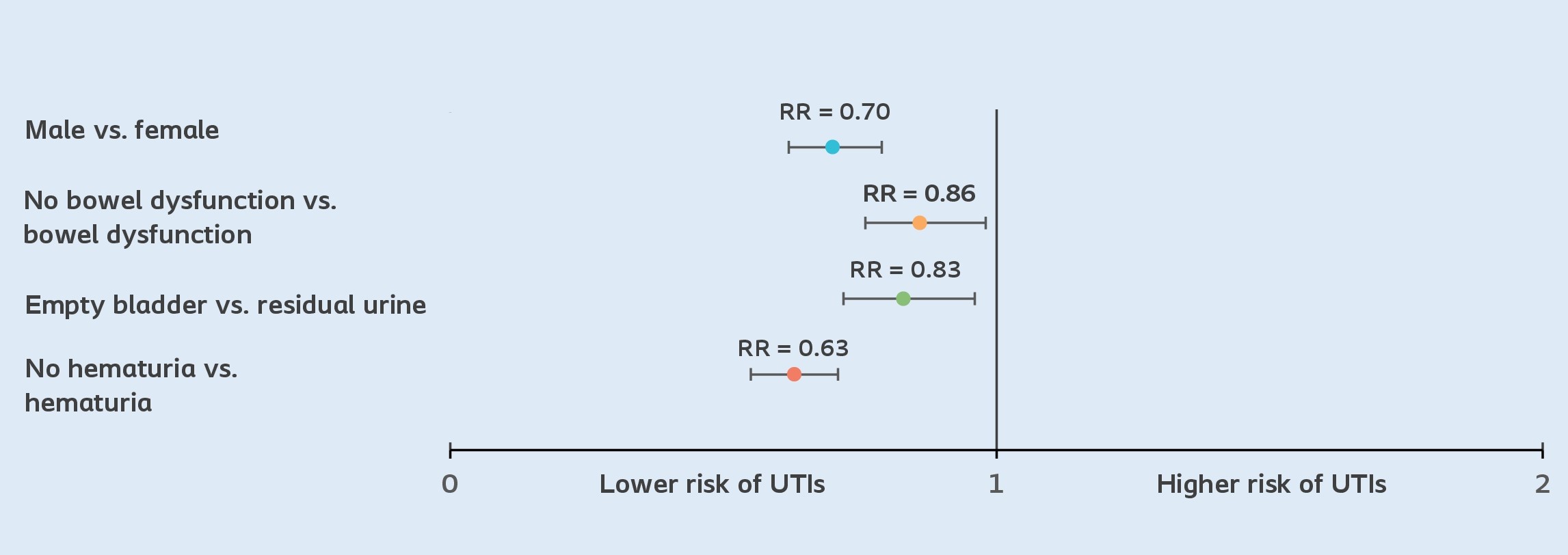 Die Ergebnisse der Studie unterstreichen die Bedeutung der von Patient:innen berichteten Risikofaktoren und das Risiko für Harnwegsinfektionen, wobei die Vorstellung, eine vollständig entleerte Blase zu haben, mit einem 17 % geringeren Risiko für HWI in Zusammenhang steht.