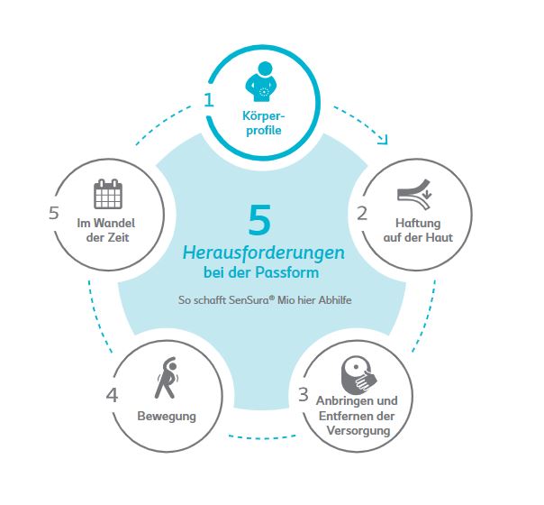 Der Unterschied, den sie macht, kann nicht mehr betont werden. Die richtige Passform ist der erste Schritt, um den Patienten Sicherheit zu geben, und es ist die kritischste Präventions- und Behandlungsstrategie. Sie ist der Schlüssel, um den Kreislauf von Leckagen und Hautproblemen durchbrechen zu können. Aber die richtige Passform sicherzustellen, ist nicht einfach. Wir bei Coloplast glauben, dass es 5 Herausforderungen gibt, die es zu bewältigen gilt, damit eine Versorgung richtig passt